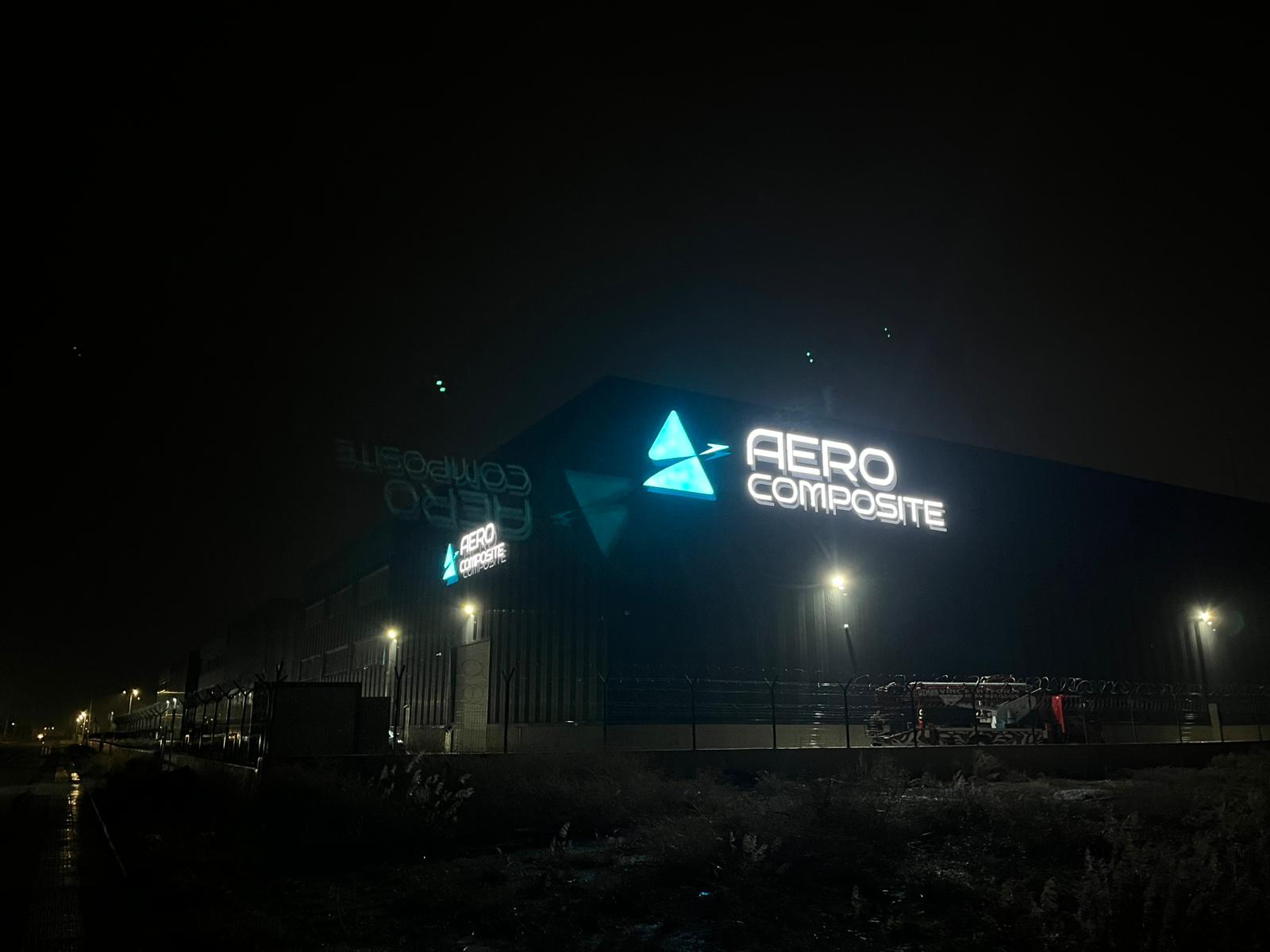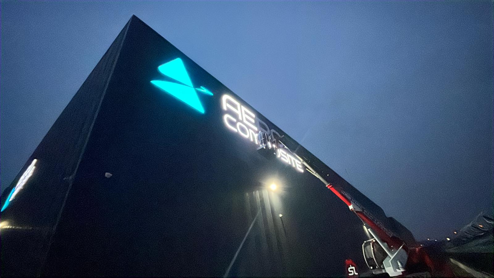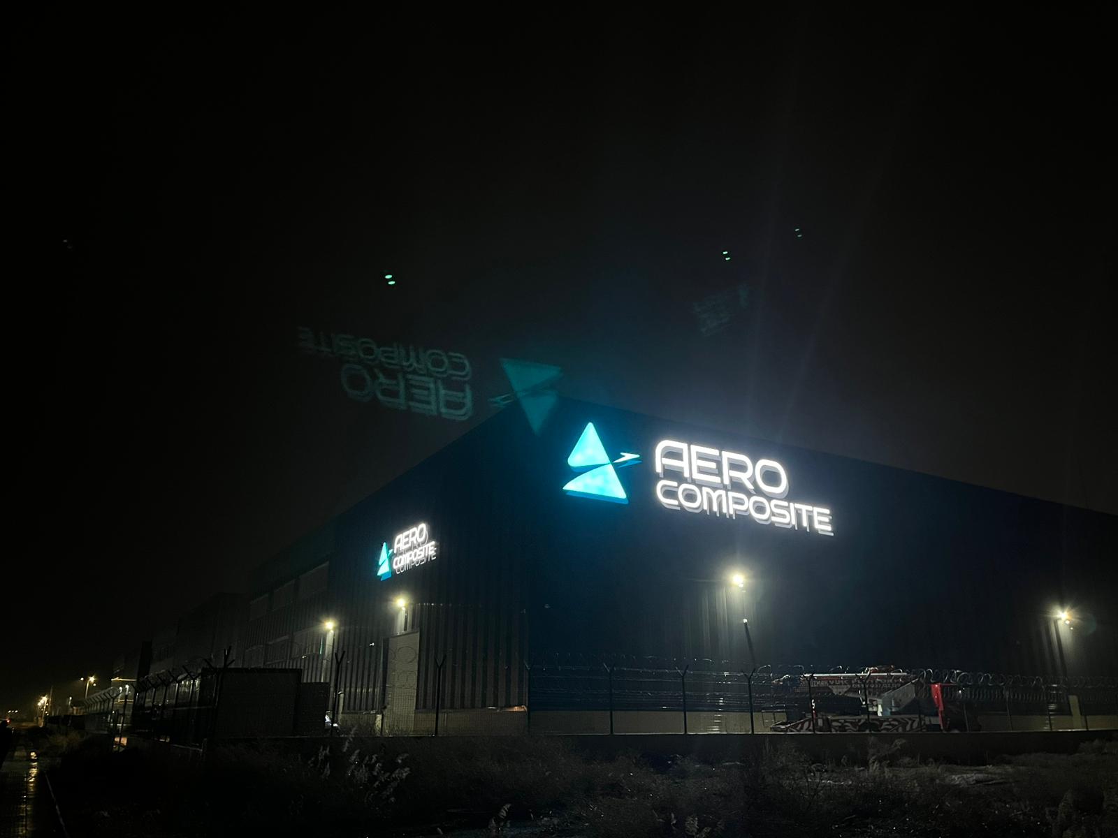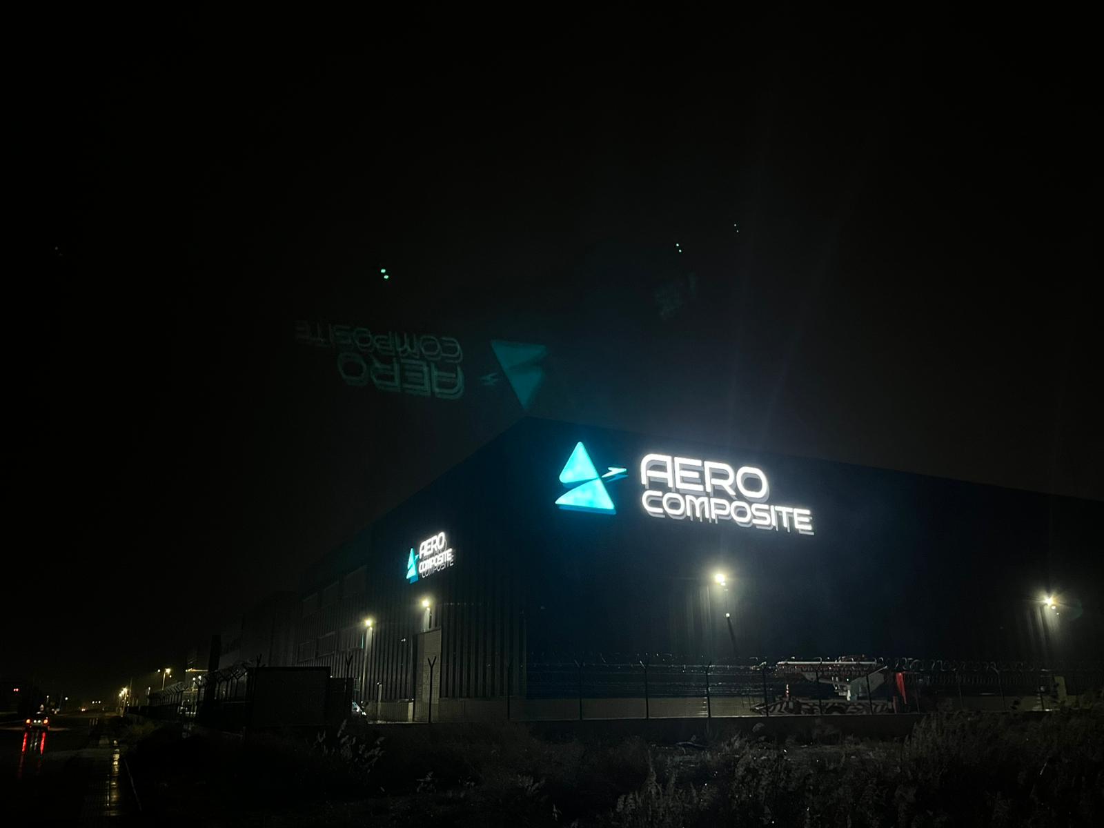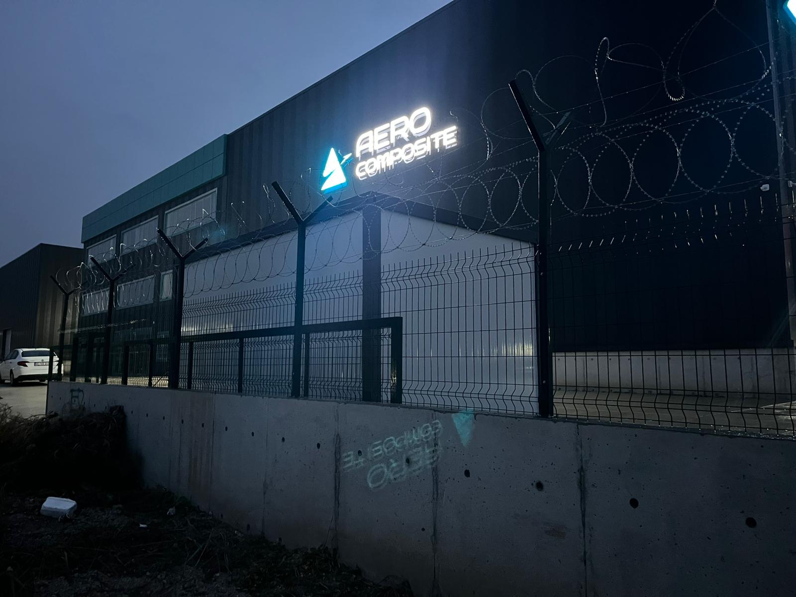 Ankara'nın sanayi kalbi Temelli fabrikalar bölgesinde, Aero Composite firması için toplam 60 m2 alana sahip devasa bir dış cephe tabela projesine imza attık.
