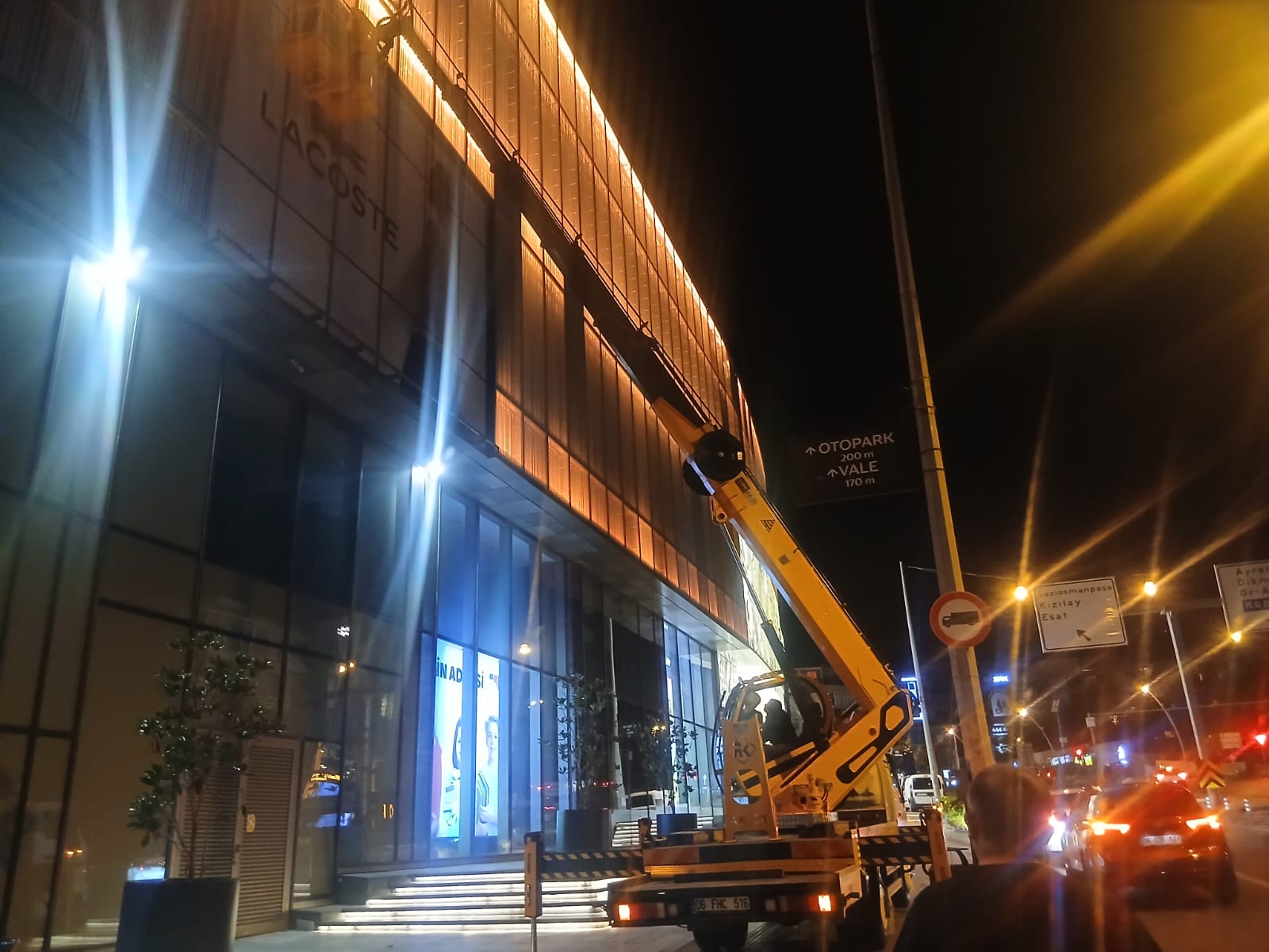 Bu projemizde önceliğimiz, hem estetik hem de uzun ömürlülük oldu. Kullandığımız özel UV baskı teknikleri sayesinde, Ankara’nın değişken hava koşullarına karşı en az 6 yıl dayanım garantisi sunuyoruz. Renklerin canlılığını ilk günkü gibi koruyan bu uygulama, markanın prestijini dev boyutlarda sokağa taşıyor. Geniş yüzeyli cephe uygulamalarında uzman ekibimizle, profesyonel montaj ve kusursuz işçilik süreçlerini başarıyla tamamladık.