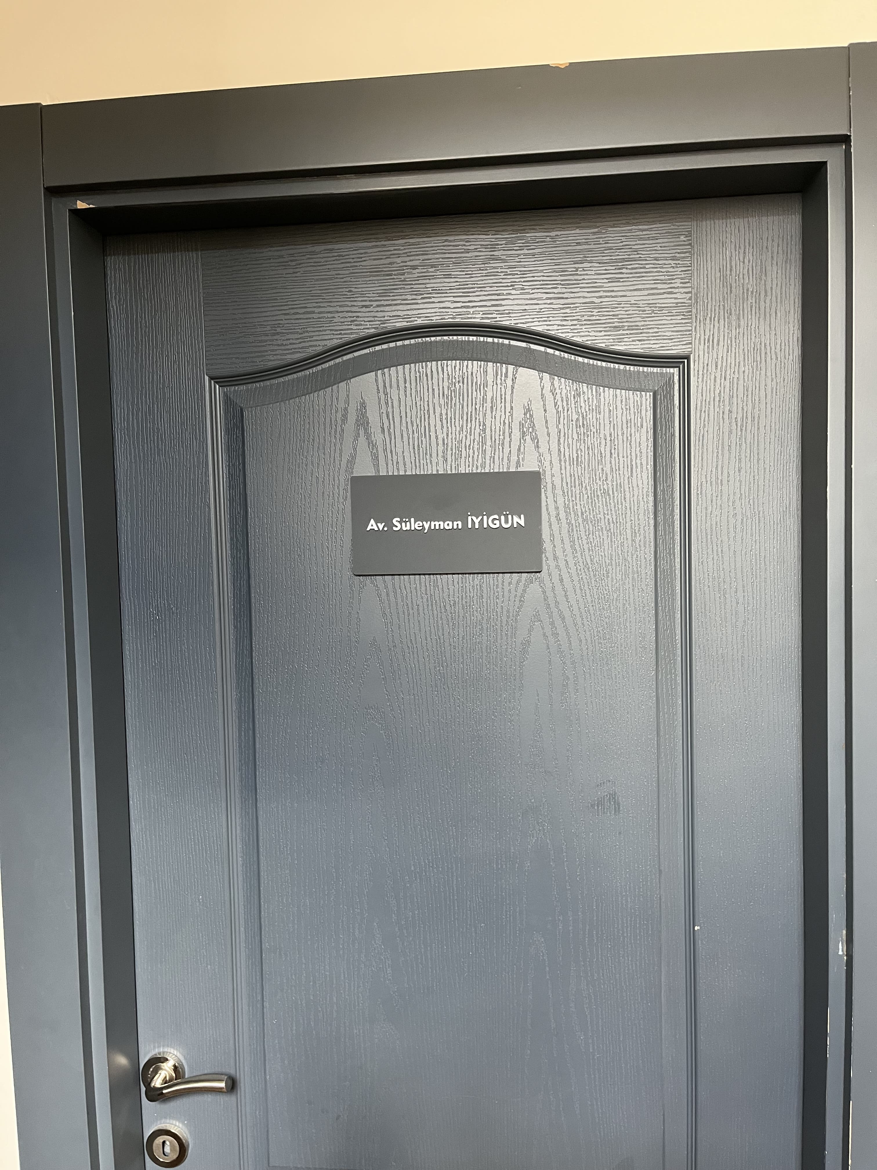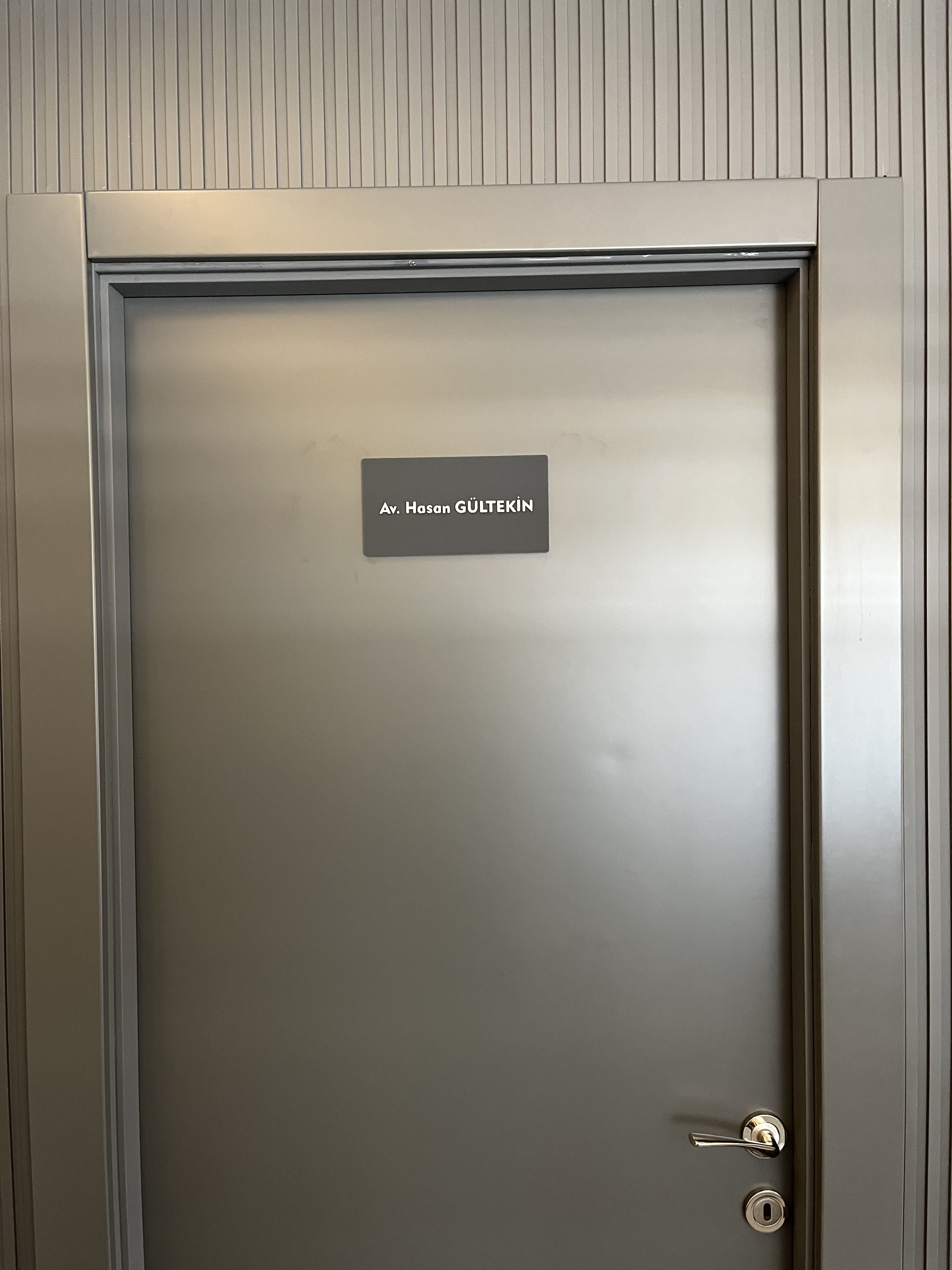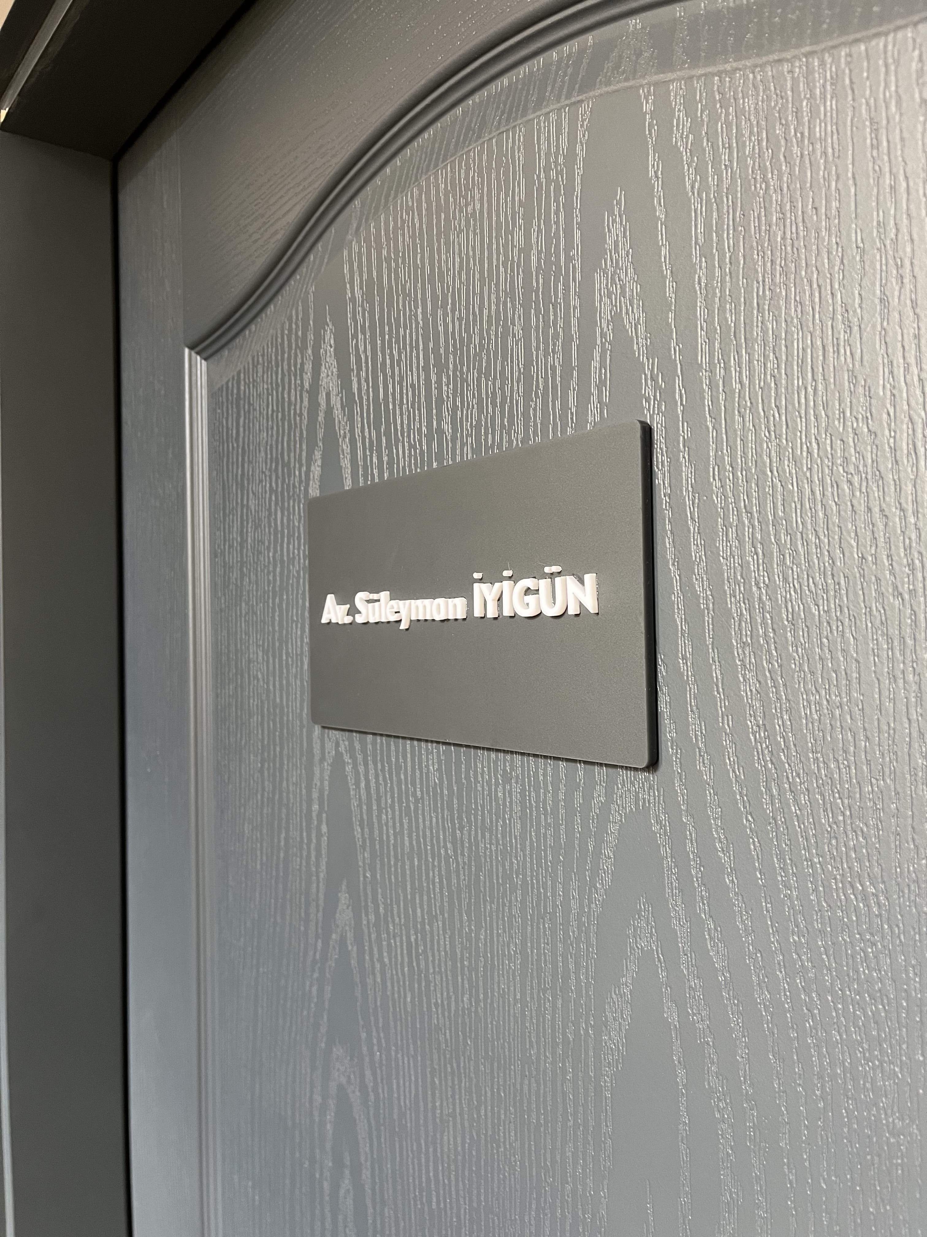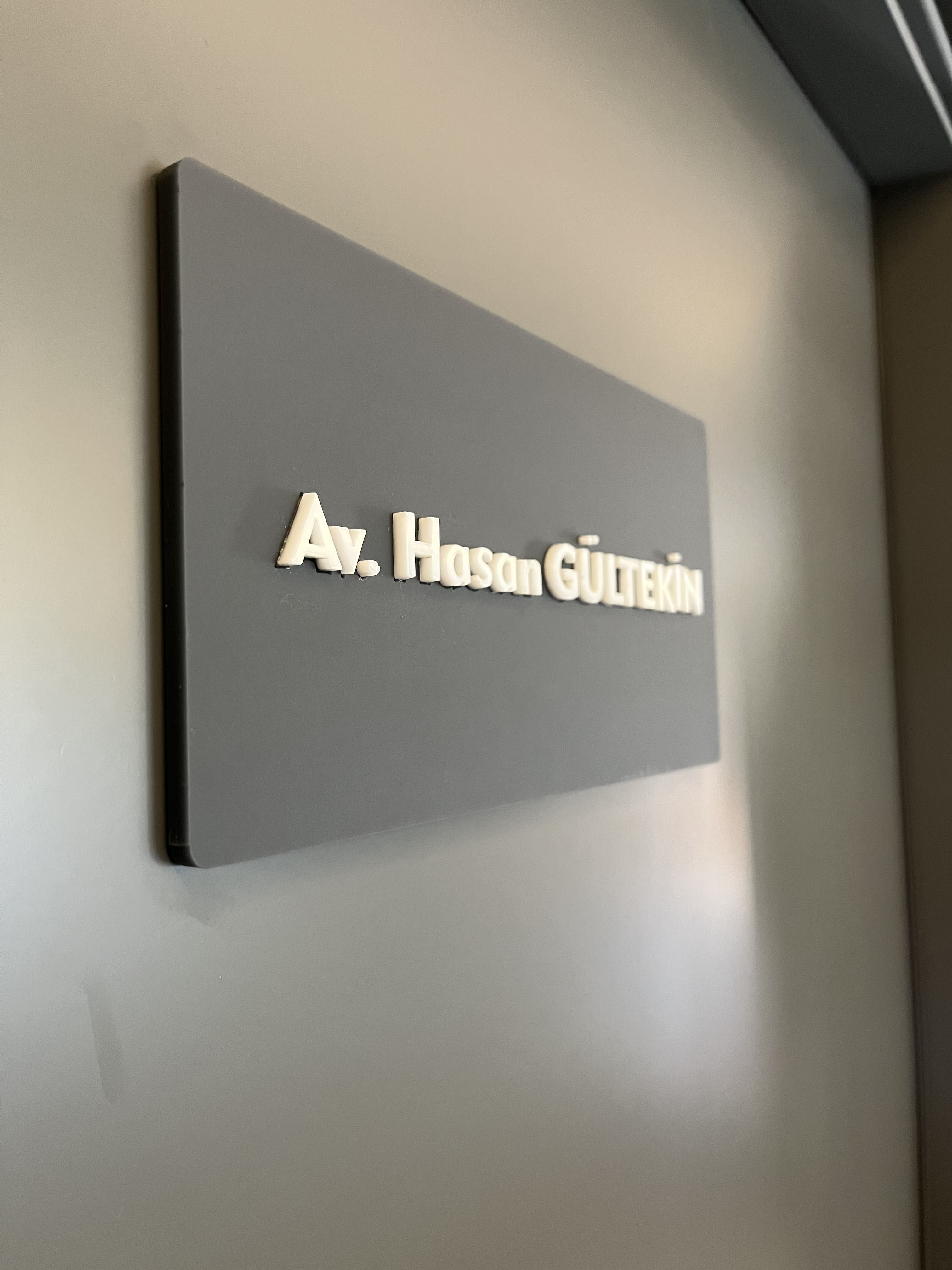 Beysukent Avukatlık Ofisi İçin Mat Antrasit ve Kabartma Pleksi Kapı İsimliği Tasarımı
