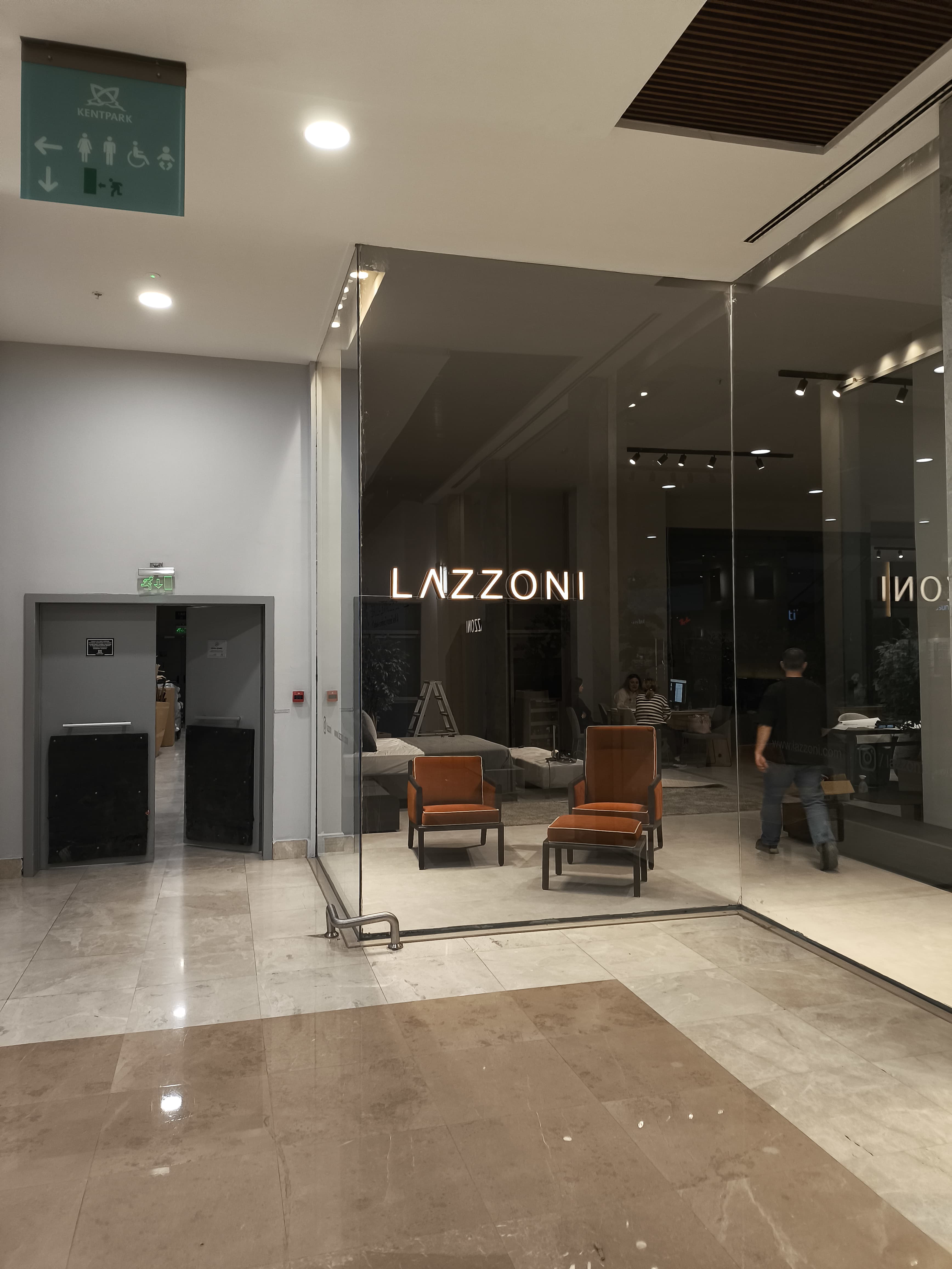 Ankara Kentpark AVM içerisinde yer alan Lazzoni mağazası için estetik ve teknik işçiliğin birleştiği özel bir cam üzeri paslanmaz krom kutu harf tabela projesini tamamladık.